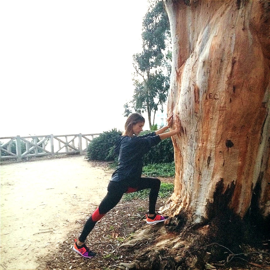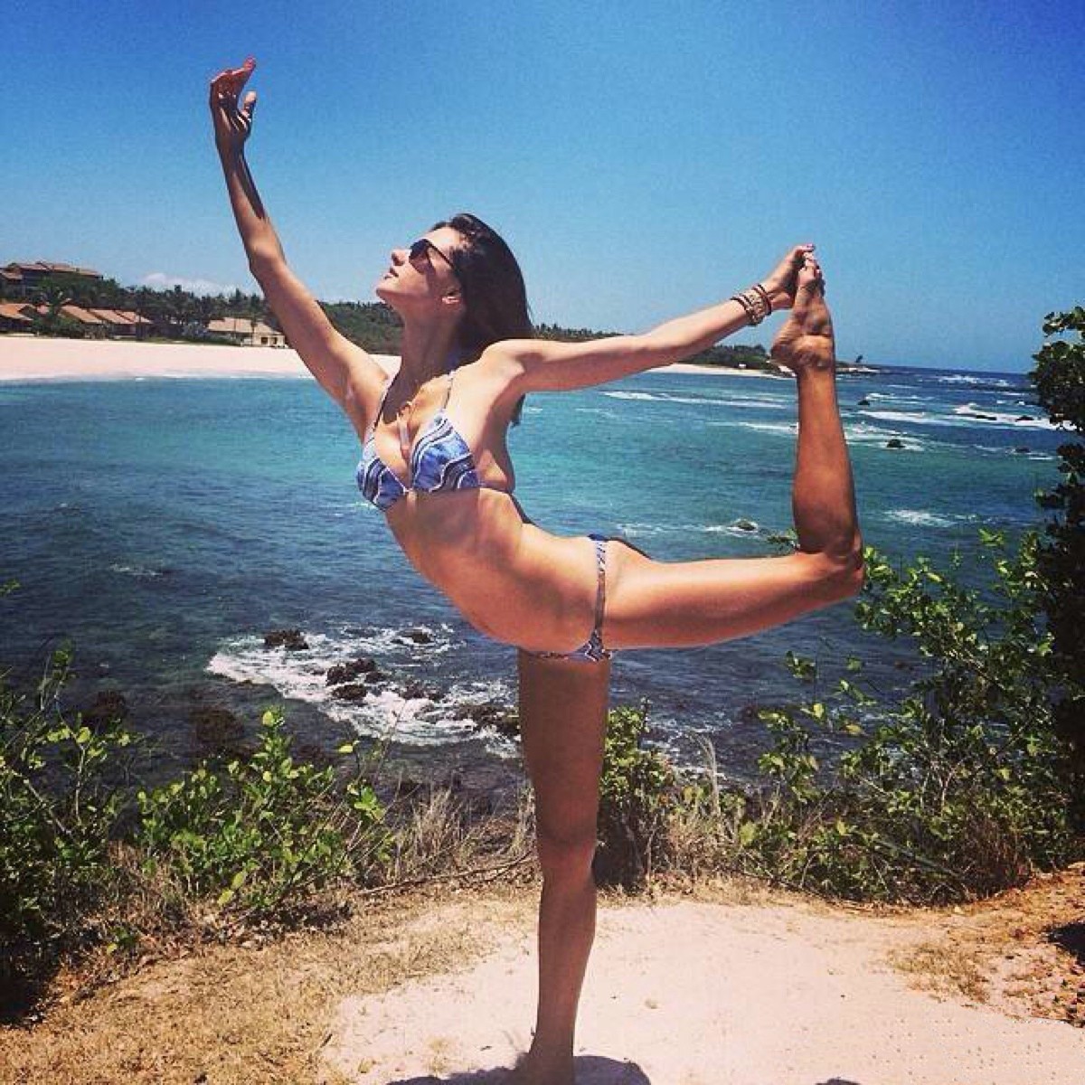 Miranda Kerr告诉我们什么是效率! 边敷脸边练核心平衡。