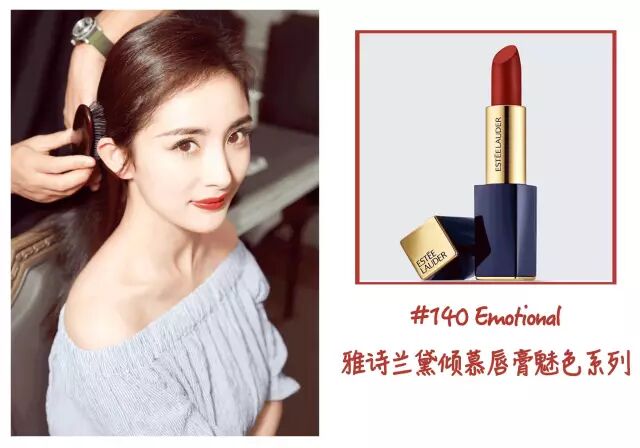 杨幂当时用的是雅诗兰黛倾慕的#140。这个颜色和刚才雪梨她们的也比较相近。