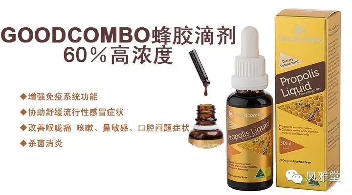 清洁牙齿还不够,饭后、牙疼、口臭、炎症反复发作时,可以用蜂胶滴剂杀菌。GoodCombo蜂胶滴剂已成为澳洲居民家中常备药,增强免疫系统功能,协助舒缓流行性感冒症状,改善喉咙痛 咳嗽、鼻敏感、口腔问题的症状,还可以涂在伤口患处用于杀菌消炎。