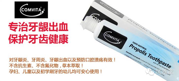 预防牙周炎,先从清洁牙齿开始,Comvita蜂胶牙膏,丰富的蜂胶成分,能在清洁牙齿的同时,帮助杀菌、消炎,杀死口腔中诱发炎症的细菌。