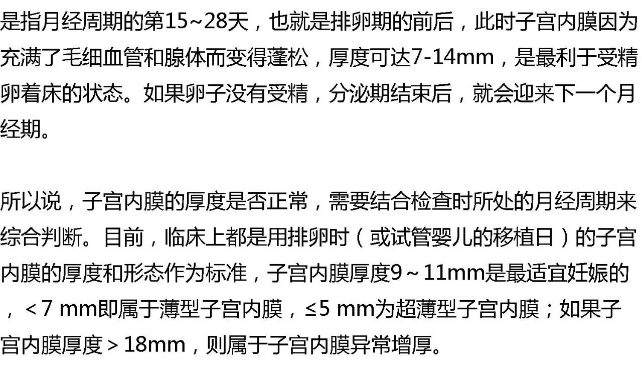 一般是指月经周期的第5~14天,这几天里子宫内膜会迅速增厚,厚度可由4mm增生至14mm。