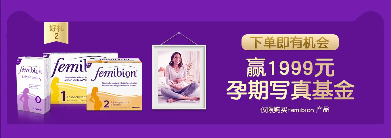即日起至11.11 日双十一当天,凡是在Merck海外旗舰店购买德国原装进口Femibon 伊维安品牌任意产品,即有机会赢取价值¥ 1999孕期写真基金,留下最美的孕妈时刻!(活动截止日期 2017年11月11日23点59分)