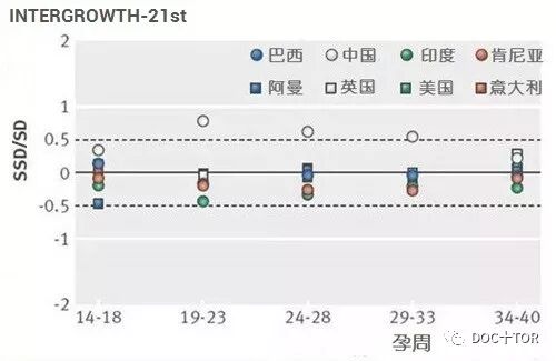 SSD/SD:每个国家体重增加值均数减去所有国家均数再除以全部国家标准差