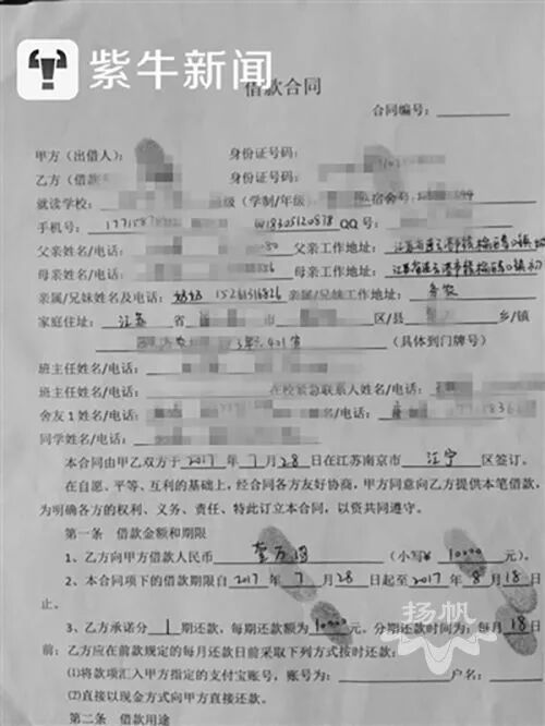 记者看到,在小洁签订的“校园贷”借款合同上,作为甲方的出借人都是空白,有的借条连向谁借、从哪个机构借都没写,极不规范,但小洁却要在合同上写上包括自己奶奶、父母、同学、老师至少7个手机号码,这也为催债埋下了伏笔。