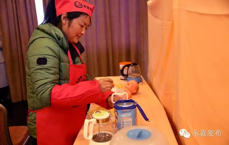 12月18日,由县委宣传部、县妇联、县人力社保局和县委人才办联合主办的永嘉县首届“金牌月嫂”母婴护理职业技能大赛在永嘉宾馆举行。38名经层层筛选出来的月嫂参加了紧张而有序的比赛。