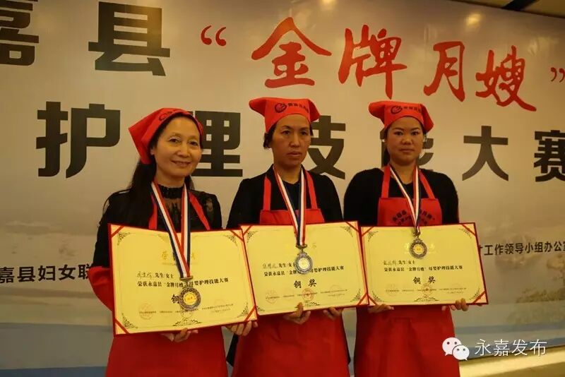 获本次大赛前6名的月嫂,由县妇联授予永嘉县“巾帼建功”标兵荣誉称号;前3名月嫂免费参加由温州贵宝贝母婴护理有限公司组织的价值6000元的催乳师培训。