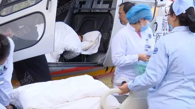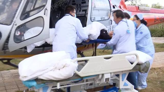 这名高危孕产妇怀孕33周,是二胎,属于瘢痕子宫,还有脊柱畸形,临时出现了腹痛、心肌缺血的情况,如果通过急救车转运,单程需要三到四个小时。再加上这名孕产妇脊柱畸形不宜颠簸,医院迅速决定采用空中应急救援直升机转运。