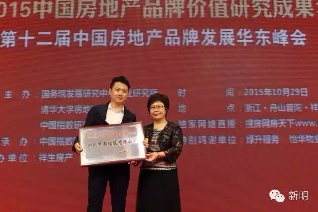 10月29日,由国务院发展研究中心企业研究所、清华大学房地产研究所和中国指数研究院三家研究机构共同举办的“2015中国房地产品牌价值研究成果(华东)发布会”在普陀山祥生大酒店隆重举行。在大会上,新明中国实至名归荣获”2015中国华东房地产公司品牌价值TOP10”称号,中指院常务副院长黄瑜女士亲自为新明授牌。几乎与此同时,十八届五中全会传来重磅消息:为促进人口均衡发展,坚持计划生育的基本国策,完善人口发展战略,全面实施一对夫妇可生育两个孩子政策。这对于矢志打造“儿童地产第一股”的新明中国来说,无疑是重大利好消息,新明的“中童·巴比尼”品牌战略引来会上专家媒体广泛好评。