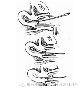 2、把取环器送入子宫腔,用取环钩沿子宫后壁缓缓前进,接触到金属物时,稍抬起钩柄,再稍稍前进,然后放下钩柄,缓缓向后退出,多能将环钩住拉出。