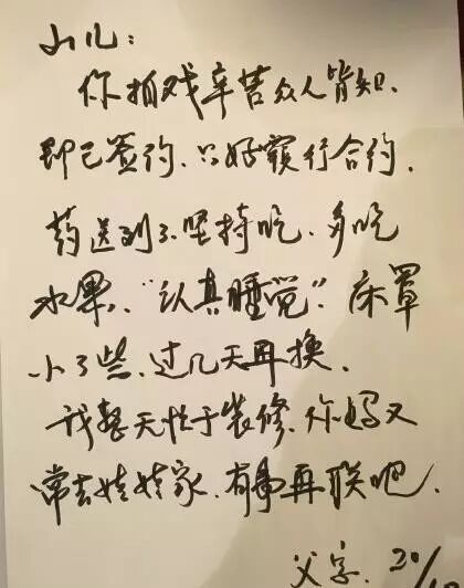 看到张一山父亲的手写信网友纷纷赞叹爸爸的字好好看