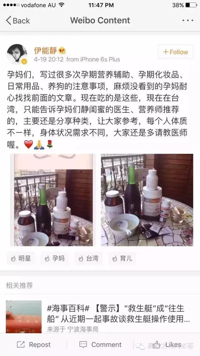 微博Po文称生产的时候很艰难,