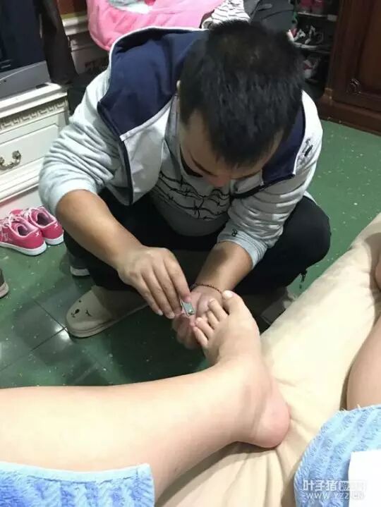 他时不时的也来我家看看我. 因为肚子大了. 弯不下腰..这是他帮我剪脚趾甲的照片..