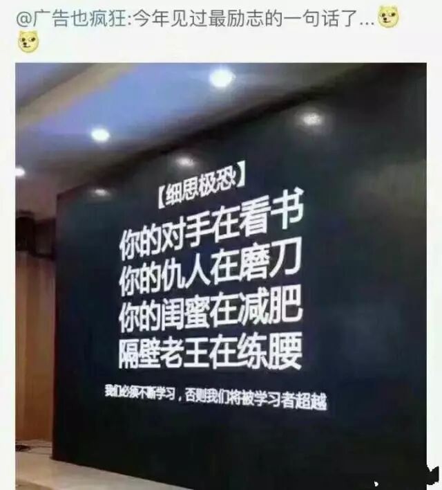 给所有开学恐惧症患者的一剂良方:9月份上课21天,10月份上课19天; 11月上课21天,12月上课19天,一共上课80天; 平均每天上课7个小时,一共560个小时,合计23天。 也就是说还有23天就放寒假了!什么叫鼓舞人心!这才叫鼓舞人心!