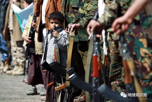 在也门儿童面前