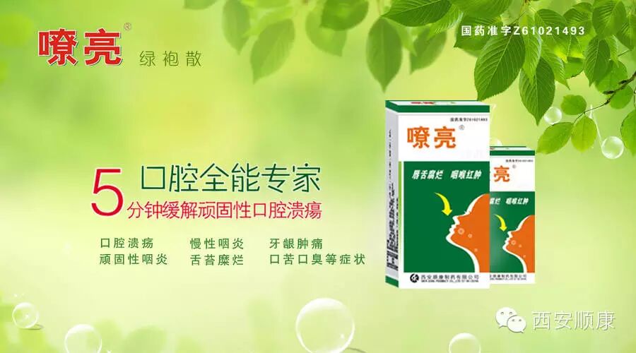 嘹亮的核心作用具有抗菌、杀菌;消炎;抗病毒等作用,更具有强力的祛腐生肌作用,能有效地对口腔溃疡、口腔脓肿、唇舌糜烂、口腔糜烂等脓腐性肌肤组织具有快速的祛腐作用,同时,能够快速生长新的肌肤组织。这是一般口腔药物所不能兼顾的作用。