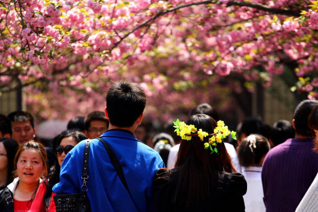 ❤和你,春天去郑大校园看海棠和樱花,粉色的花瓣铺满街道。
