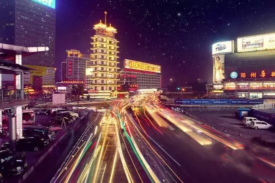 ❤和你,夜晚登上二七广场的天桥,看人民路川流不息的车水马龙。