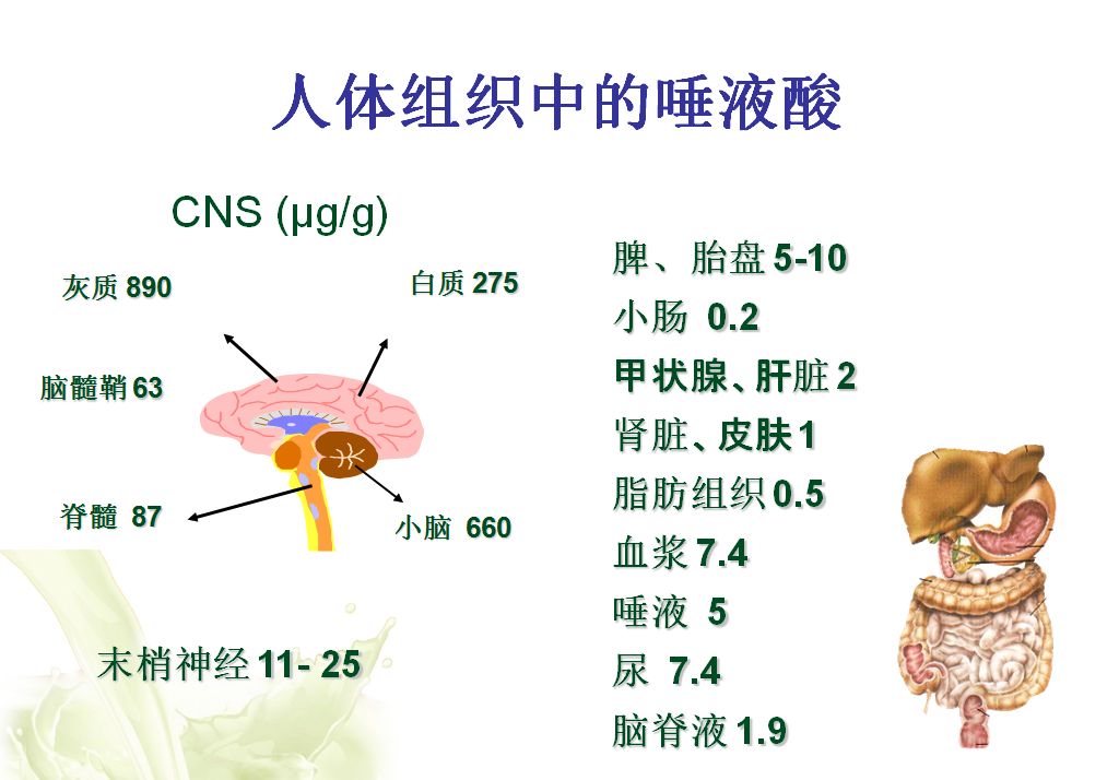 而我们也知道,脑、骨骼肌、内脏或者其他组织器官都含有唾液酸,特别是脑发育对此的需求很大。