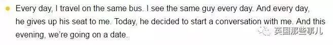 我每天赶同一辆公交车。每天都有个男孩给我让座。