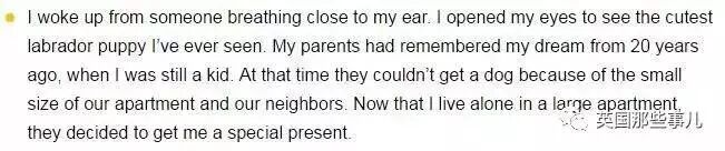 他俩一直记得,20年前,我的童年愿望就是想养一只狗。但当时,我们的公寓小,邻里关系又复杂,最后没能养成。