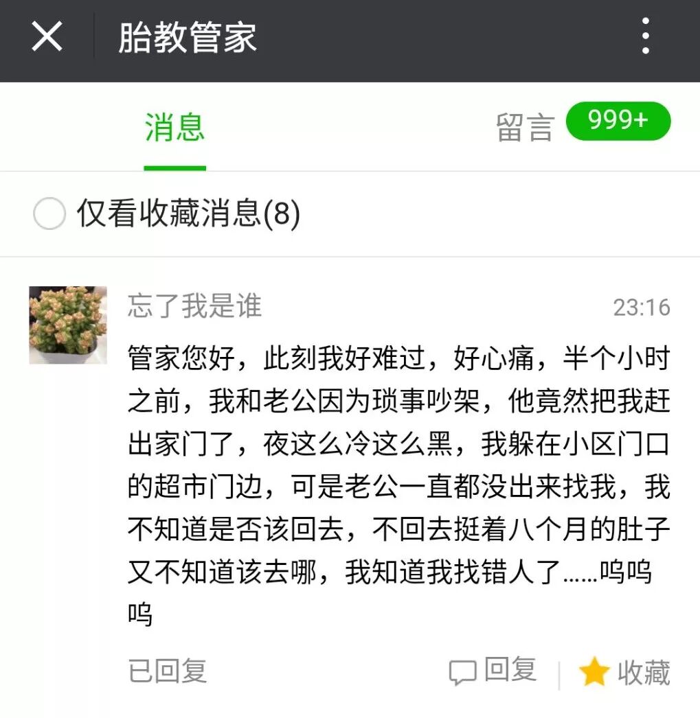 看看留言的时间是夜里11:16分,管家第一时间回复了这位孕妈,在面外比较危险,管家建议她先回家去,先不要和老公置气,为了孩子和自己的身体。