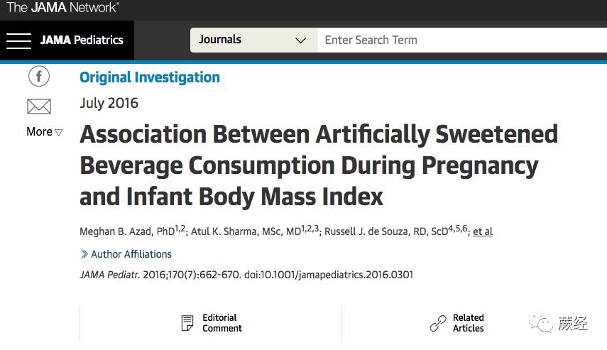 关于人工甜味剂可能的危害、上次分享过一篇。今晚随手再分享一篇发表于JAMA Pediatrics(JAMA儿科)在2016年7月发表的文献、看看说了些什么。