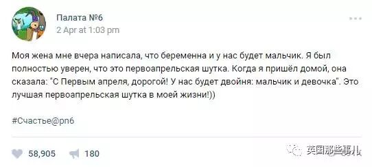 “愚人节那天,老婆给我发了一条信息说她怀孕了,是个男孩。我当时想,这肯定是个愚人节玩笑,就没在意。