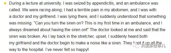 我就这么躺在那儿,突然意识到哪里不对。我挣扎着问大夫:‘救护车的警笛怎么没响啊?’