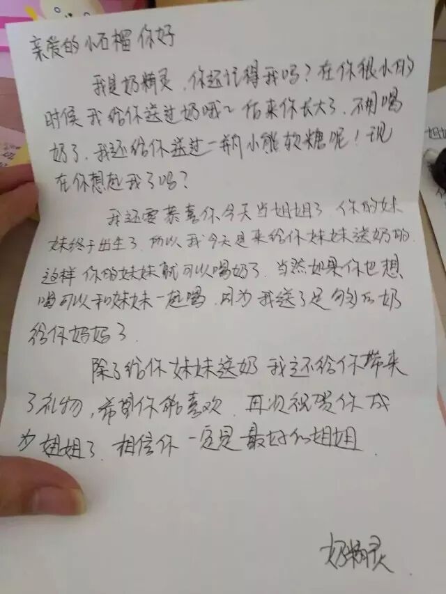 3. 把提前写好的奶精灵和妹妹的信读给大宝听。