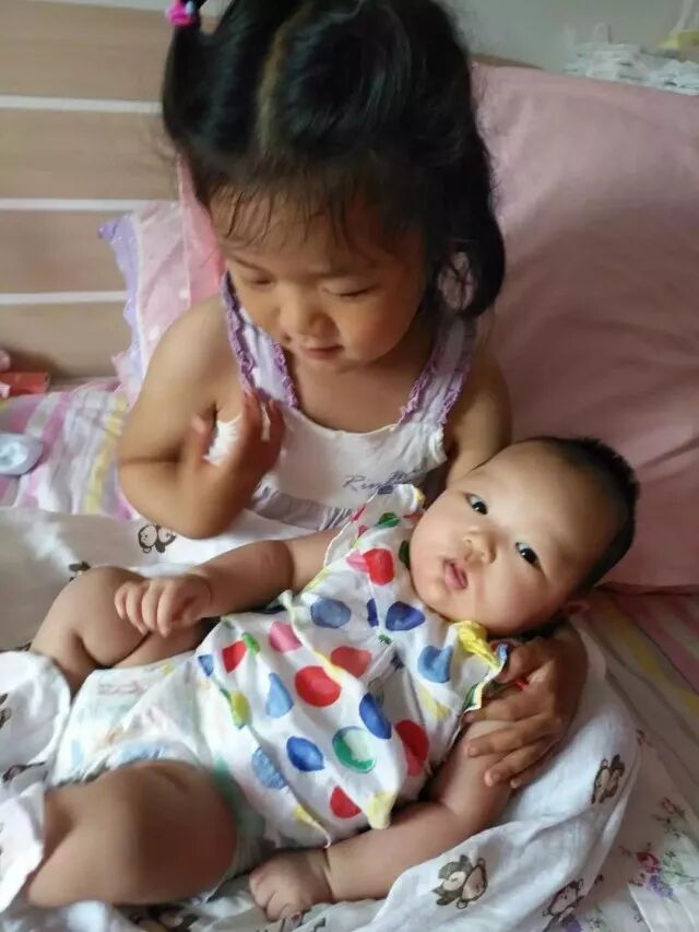 5.创造一些机会让大宝抱二宝,照顾二宝,并及时给予肯定。