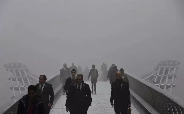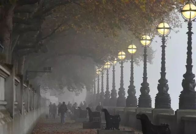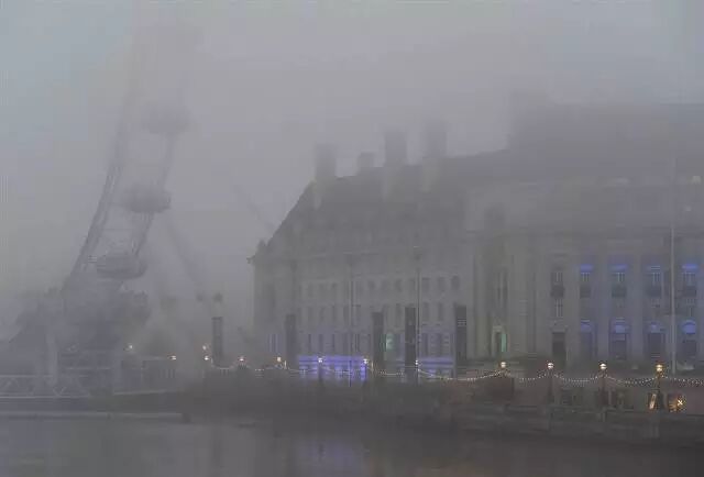 11月2日,英国伦敦,行人在雾天早晨走过泰晤士河上的千禧桥。大雾导致英国多个机场航班受到影响。