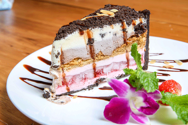 一口咬下,绵密的蛋糕混合着三种冰淇淋、坚果碎片....甜品控分分钟被圈粉了啊啊啊!
