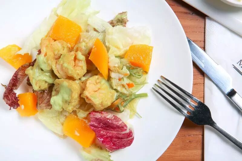 炸虾+青芥末酱+芒果,这样的搭配除了完美还有什么可以形容!