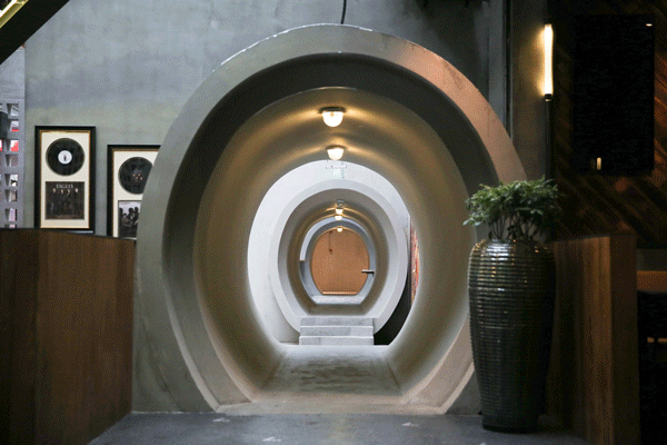 磁石的店内有好几个巨大的水泥管道入口,充满着神秘的未来感,仿若时空隧道.....