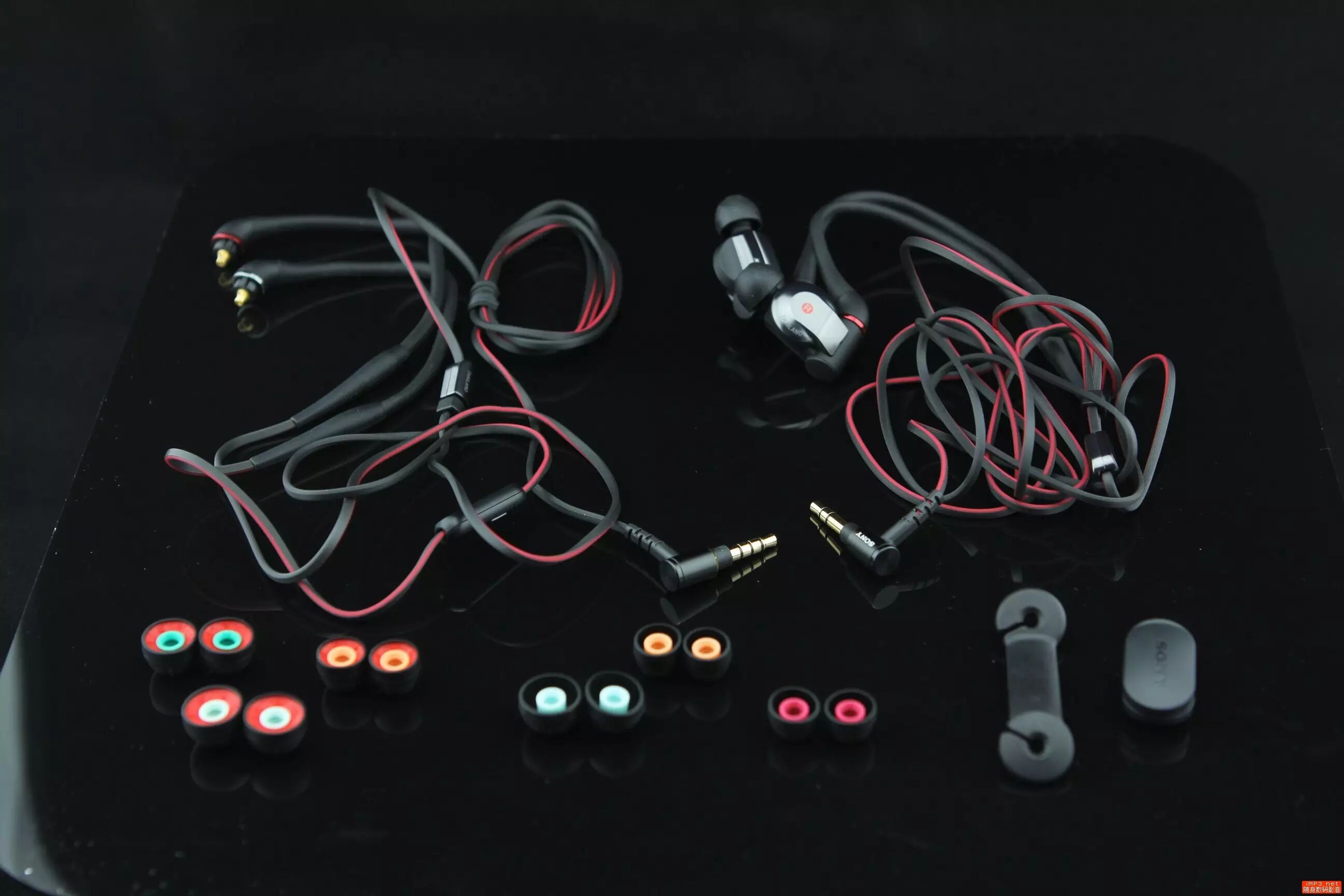 配件还是如以往般良心,除了配备大小齐全的两种耳套(泡沫硅质耳塞/混合硅胶耳塞 )外,还贴心的额外配备了一条带线控的耳机线(iOS/Android适用)