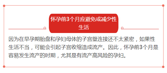 8、怀孕初期应注意节制性生活。怀孕头3个月和后3个月要避免性生活。以防宫缩引起流产或早产。孕中期的性生活也应有所节制。