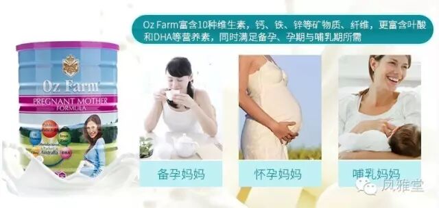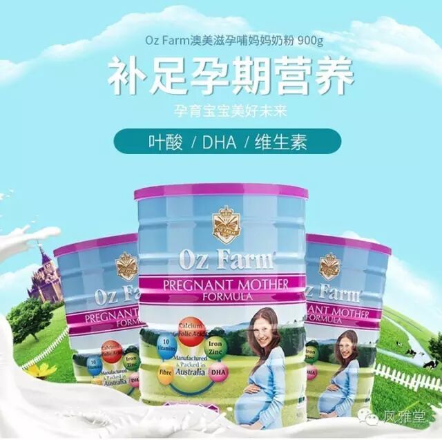 Oz Farm(澳美滋)孕哺妈妈奶粉专为孕妇和哺乳期妇女配制,可同时满足胎儿和母亲对能量、蛋白质、DHA、铁质、OMEGA-3、叶酸以及其他营养素的额外需求;添加了DHA能促进宝宝的大脑发育,产品中含有浓缩蛋白质,低脂肪低胆固醇,叶酸等15种维生素和矿物质,帮助胎儿健康生长发育。