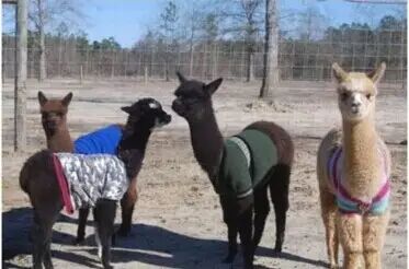 南加州某个农场主怕草泥马冬天冷,特意给他们穿上了小衣服。