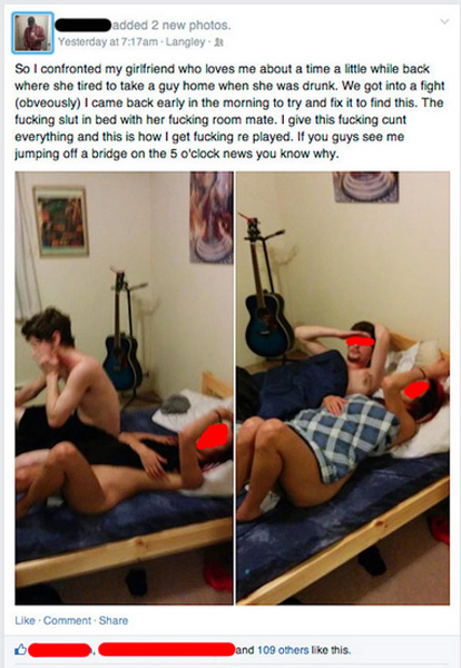 最后教给大家一个撕逼新技能!这个男子把抓奸在床的照片po到了facebook