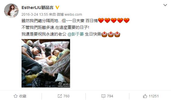 生日祝福也是相当甜蜜,不知道的人还以为他两结婚了呢。
