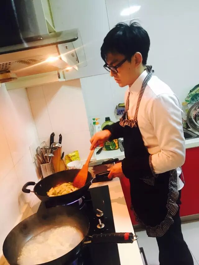 不会做饭的他,因为舍不得老婆学做饭,所以自己按照菜谱一点点摸索学习;