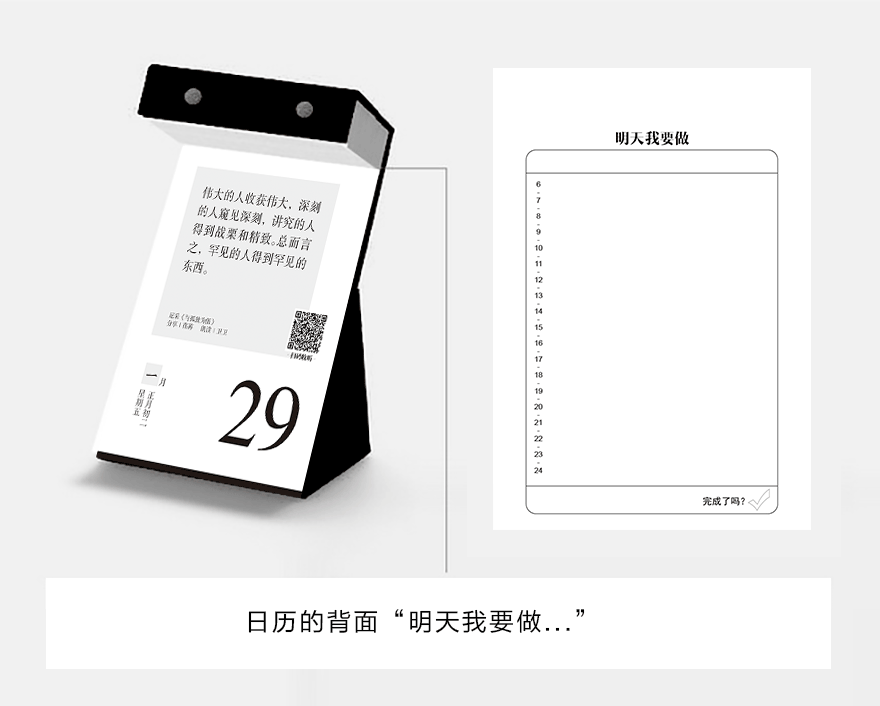 正面日历,背面手帐,一本日历,两种用途。