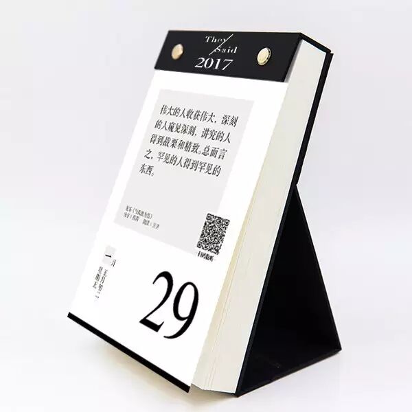 不仅仅是每天一段经典语录,扫码还可以查看整本书的经典书摘及分享者的读书感悟,每天一页日历,一年下来,你能了解上百位全世界的文学大师,接触上百本经典书籍。可以说,这是一本能够拯救你书荒的日历。