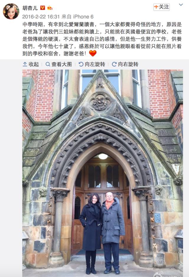 小时候的胡杏儿,就是个相貌平平的女孩子,生在普通家庭。当警察的父亲拼了命将三姐妹送去英国读中学,甚至没有余钱飞去看看她们。▼