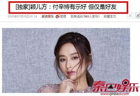 付辛博深夜密会两女的新闻曝光之后,颖儿方最先做出回应,表示“付辛博有示好,但颖儿只把他当朋友”