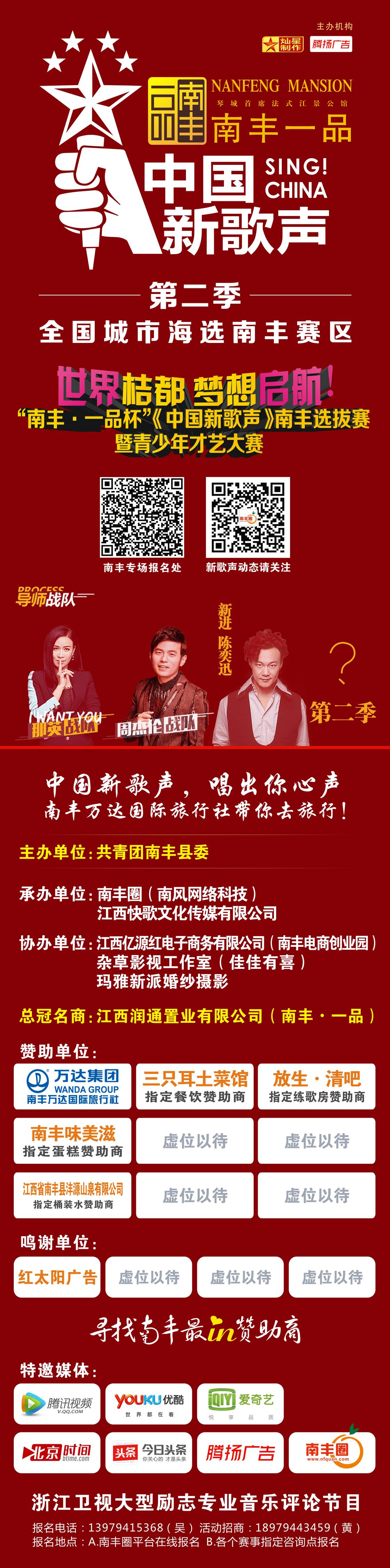 热烈庆祝南丰·一品成为《中国新歌声》南丰赛区总冠名商。
