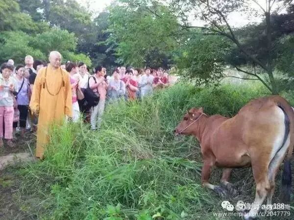 ????海涛法师领众放生,怀孕的母牛下跪感恩