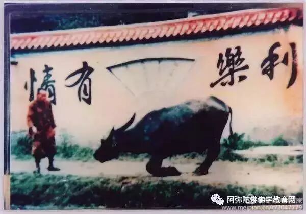 水牛下跪摄于1980年,福建福安赛崎村一头老牛被集资解救送往寺院,老牛常会跪拜僧人和看它的村人。