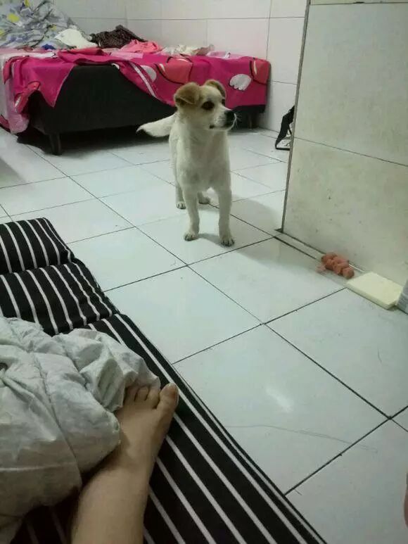 炒鸡瘦,特别文静的一只,不吵不闹,就是太瘦了让人心疼。挺乖的,这种狗很好养,不娇气。最最重要的是它炒鸡乖,带回来都没有在家大小便过,牵进来才大小便,如今胆子大了一丢丢。
