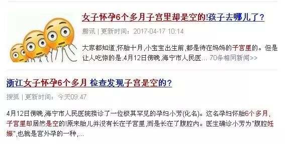据新闻报道,在4月12日当天海宁市一医院接诊了一个比较特殊的患者。24岁的女孩,由于腹痛才去医院就诊。进行b超检查发现这个女孩已经怀孕六个月了,但是子宫却是空的!最后被确诊为腹腔妊娠,也就是宫外孕的一种,这种发病率约为1:15000,母体死亡率约为5%,胎儿存活率仅为1%的罕见妊娠。